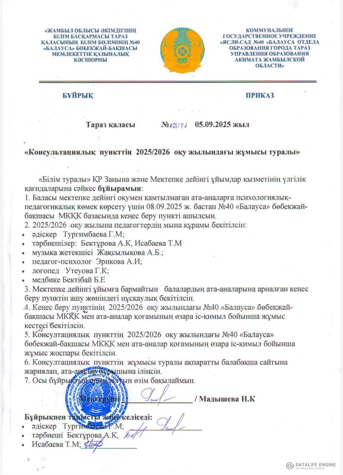 05 сентябрь 2025 0 1 2 3 4 5 Консультациялық пункттің 2025-2026 оқу жылындағы жұмысы туралы бұйрық Консультациялық пункттің 2025-2026 оқу жылындағы жұмысы туралы бұйрық