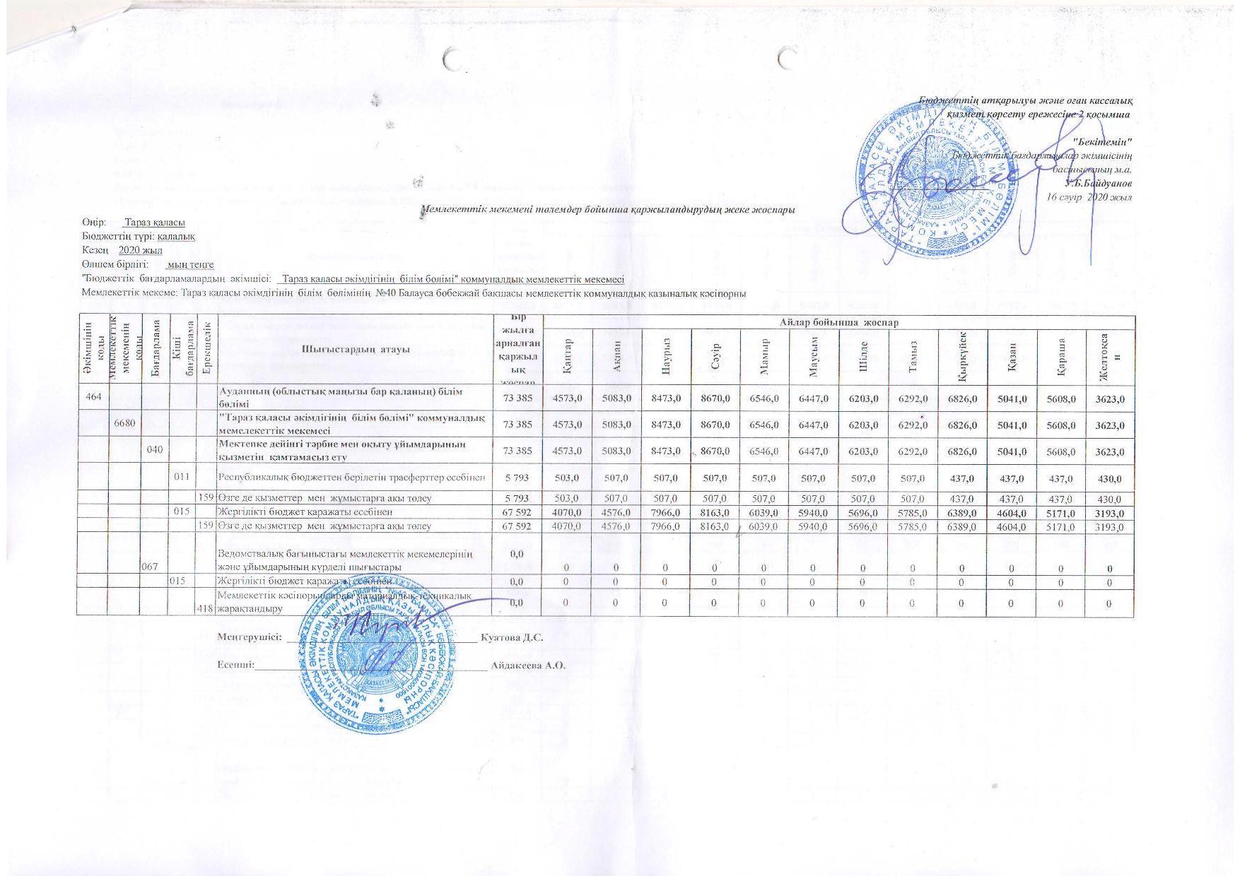 Детальный план 01.07.2020 » №40 "Балауса" бөбекжай-бақшасы