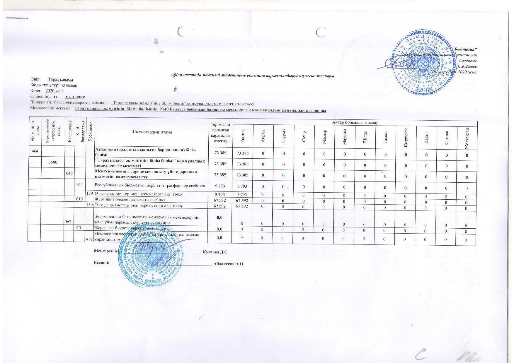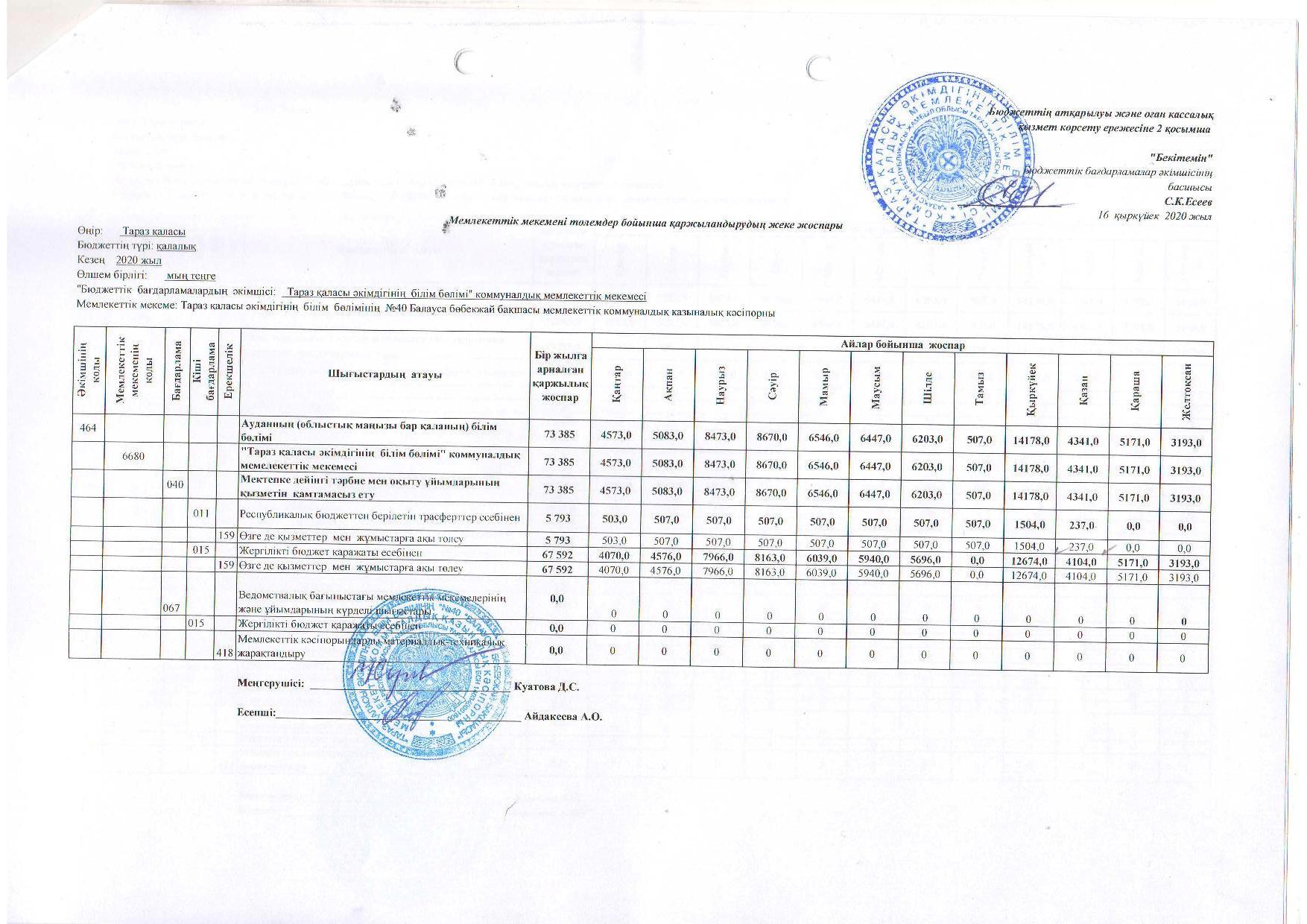Индивидуальный план финансирования » №40 "Балауса" бөбекжай-бақшасы