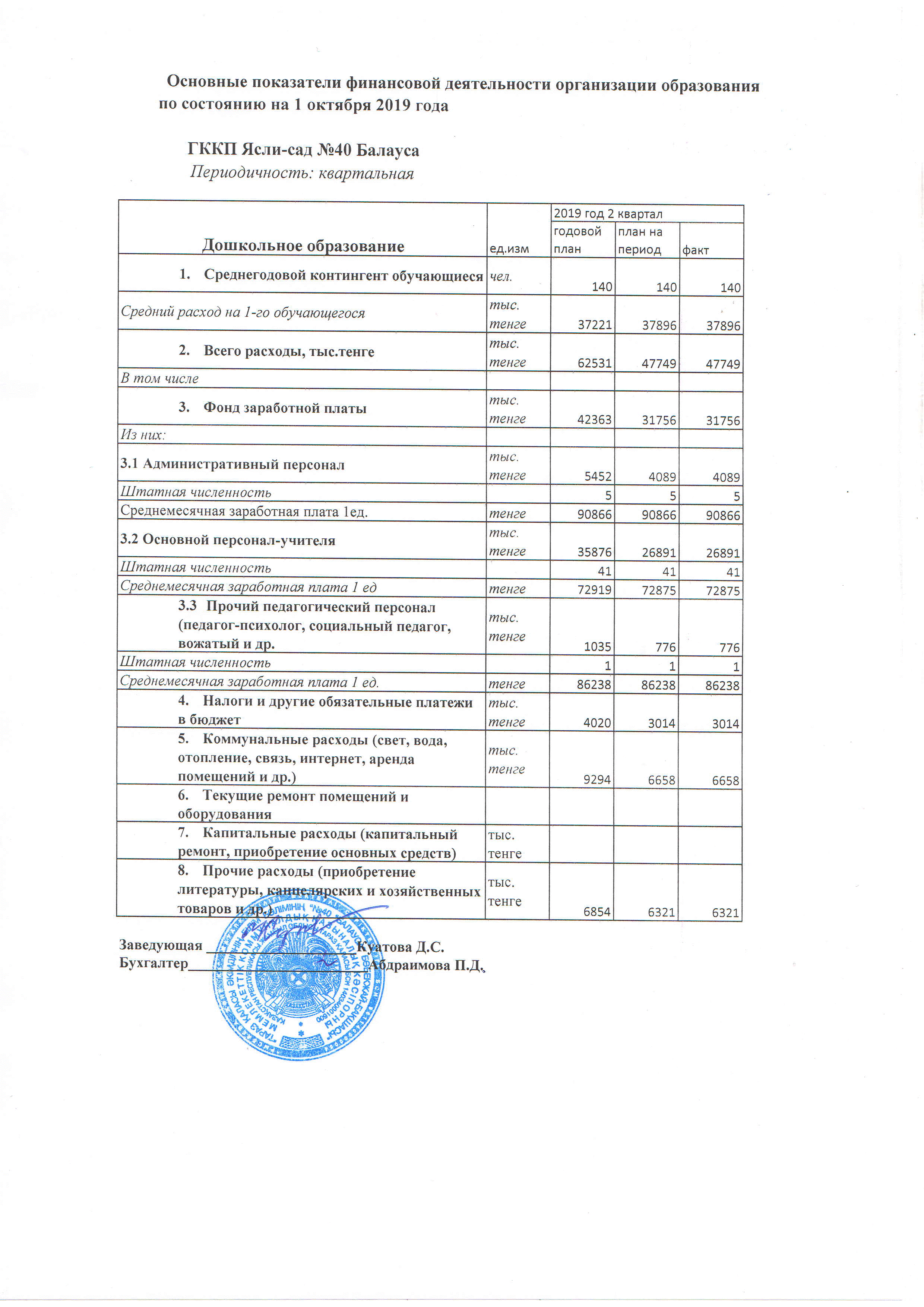 Основные показатели финансовой деятельности » №40 "Балауса" бөбекжай-бақшасы