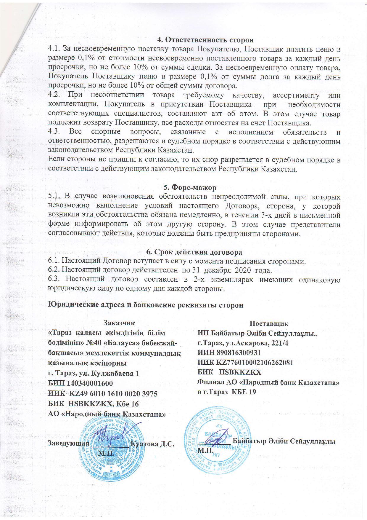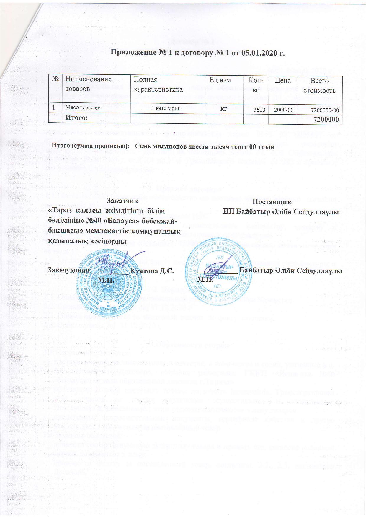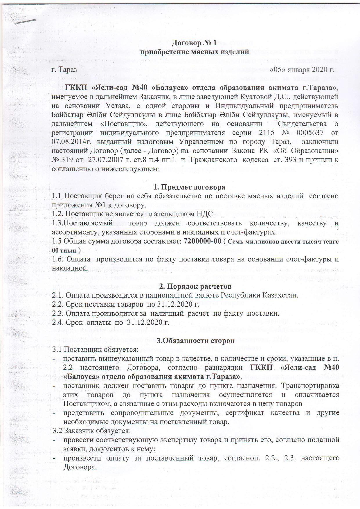 Договор №1 » №40 "Балауса" бөбекжай-бақшасы