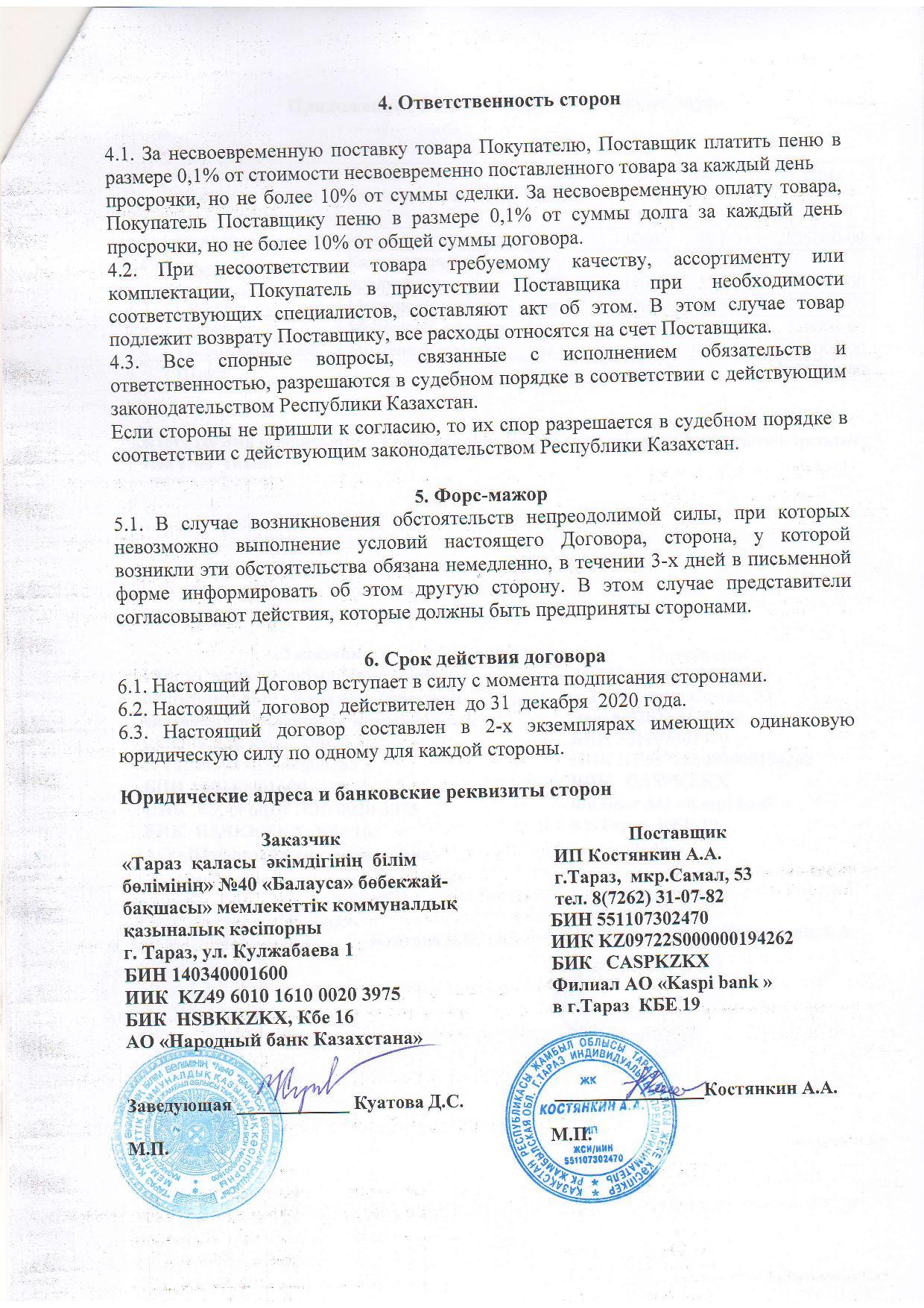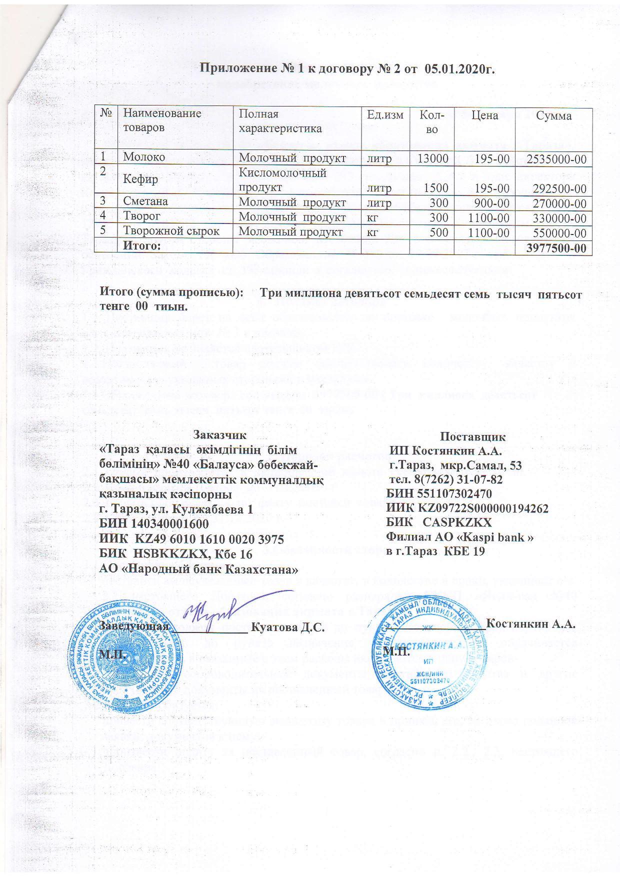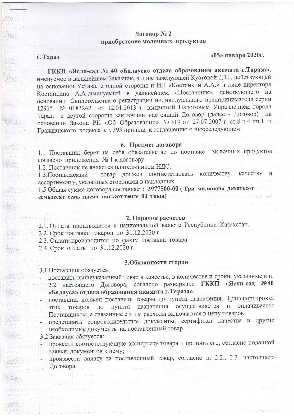 Договор №2 » №40 "Балауса" бөбекжай-бақшасы