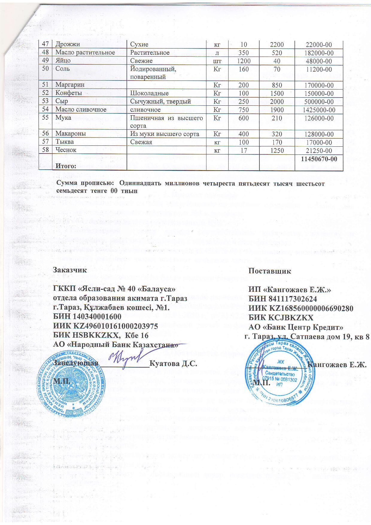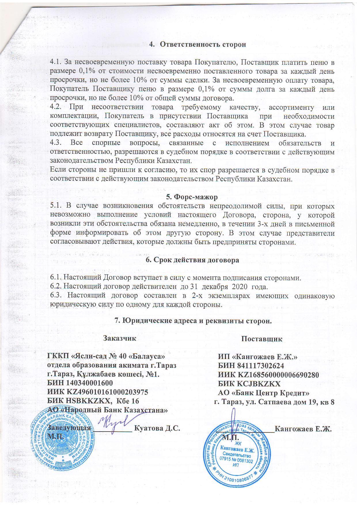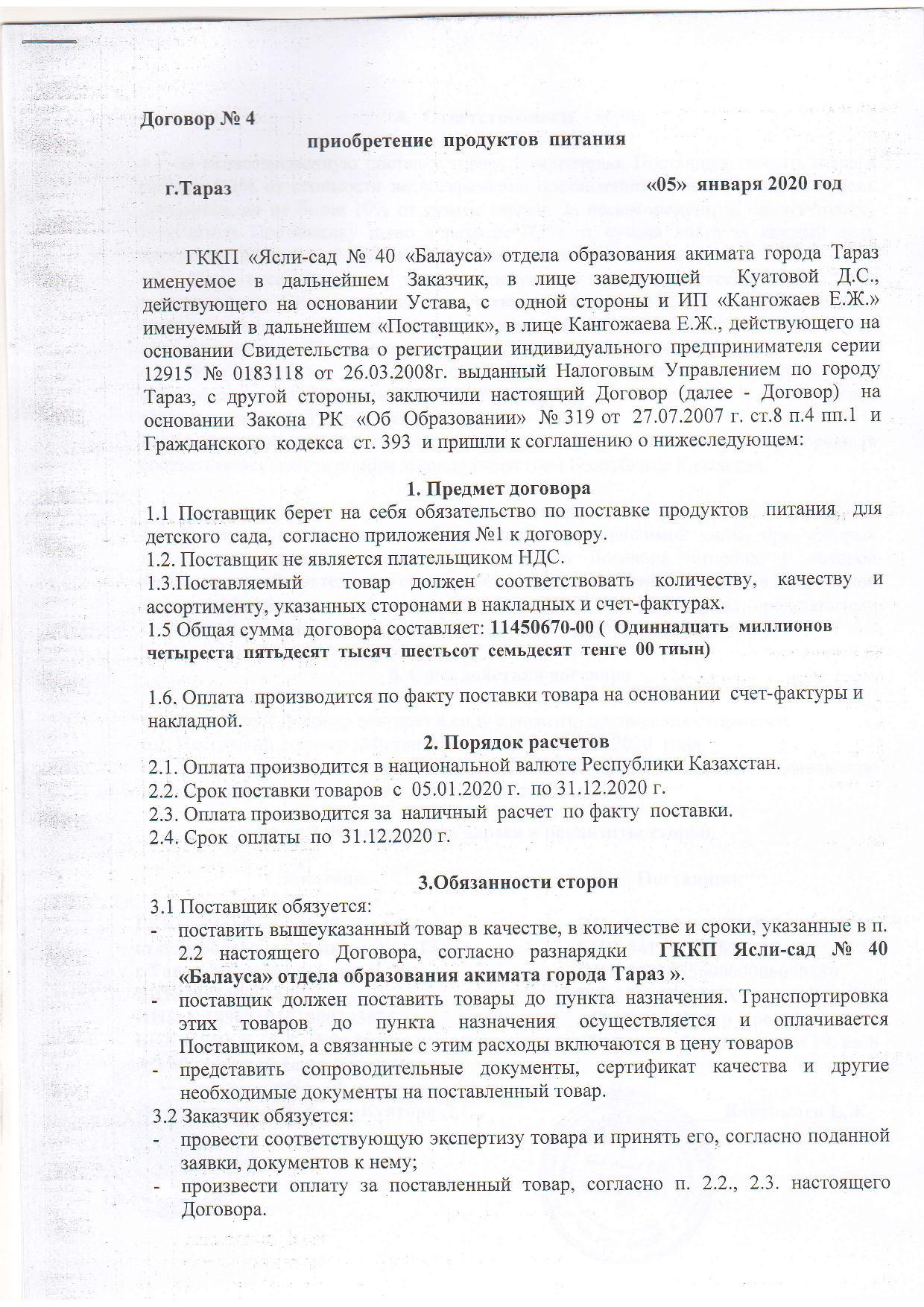 Договор №4 » №40 "Балауса" бөбекжай-бақшасы