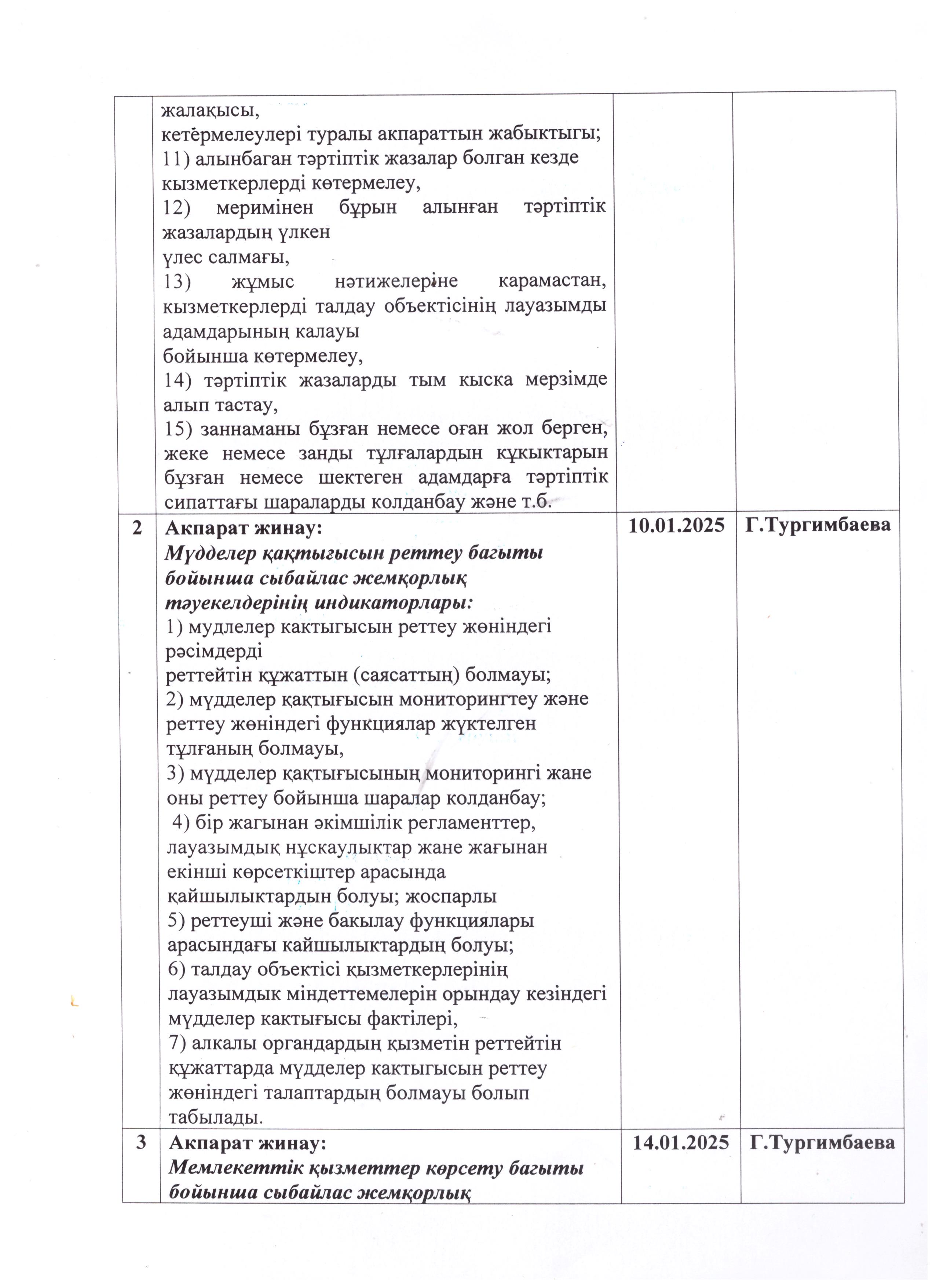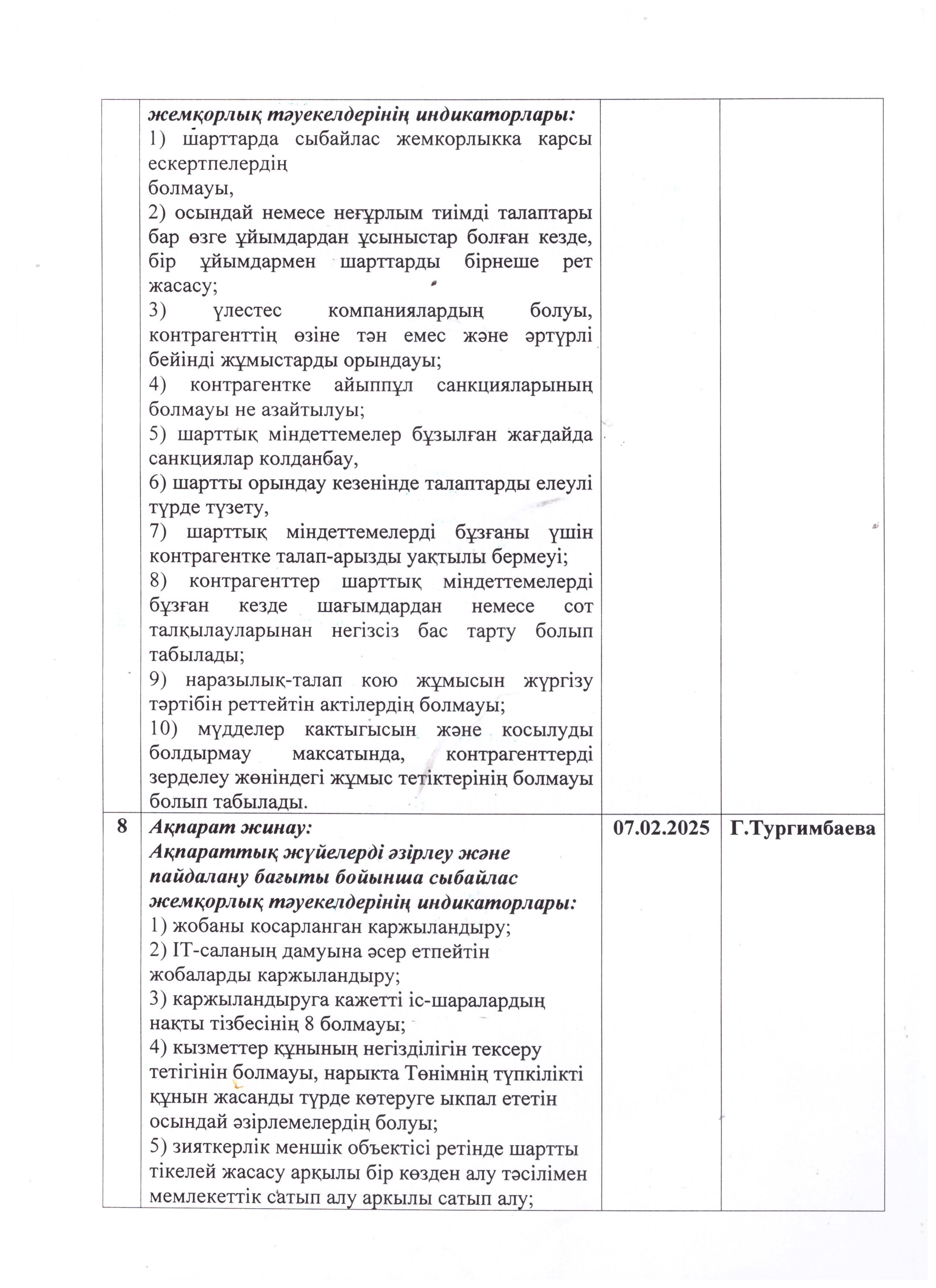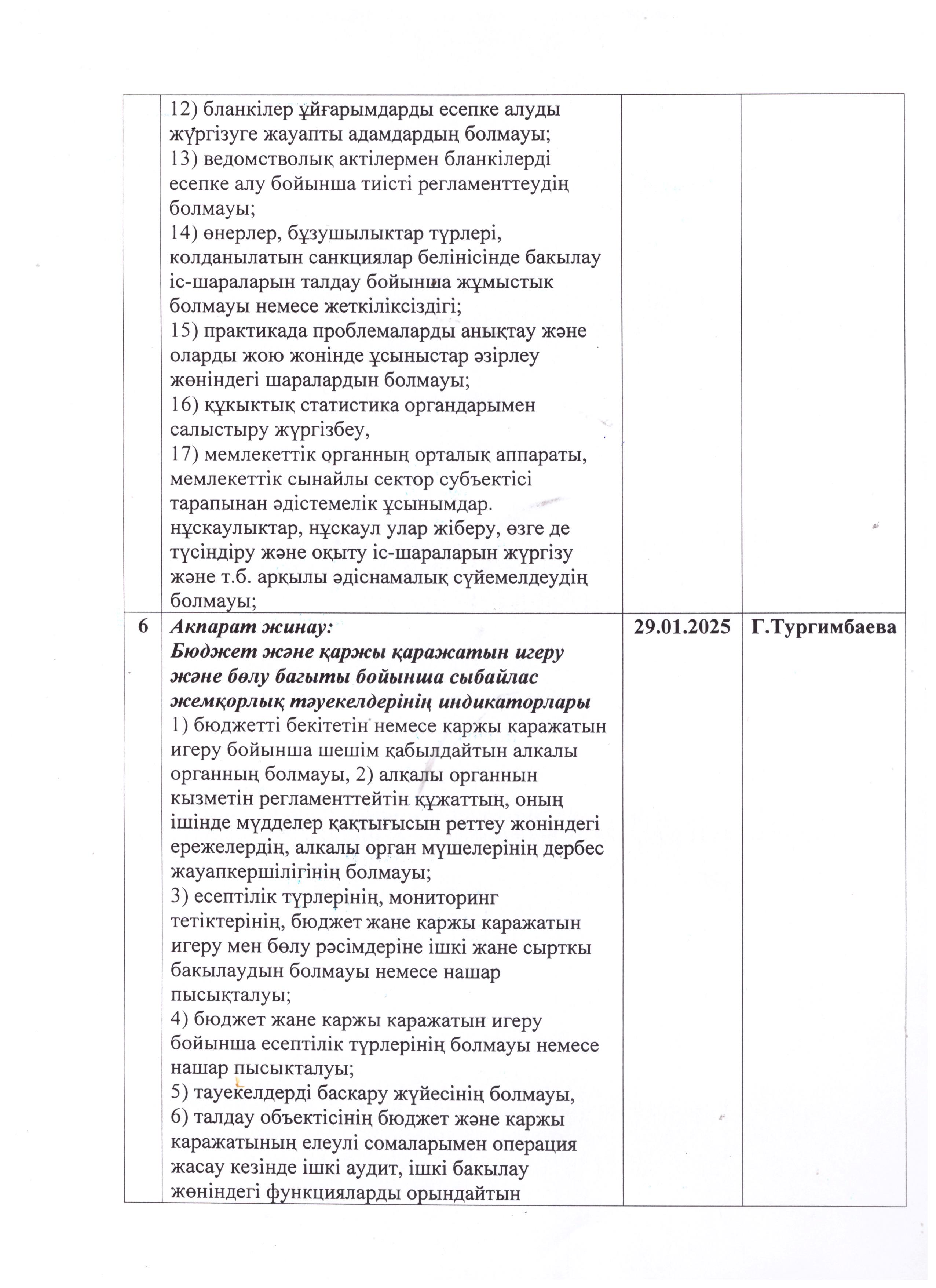 » » Сыбайлас жемқорлық тәуекелдеріне ішкі талдау жұмыс жоспары