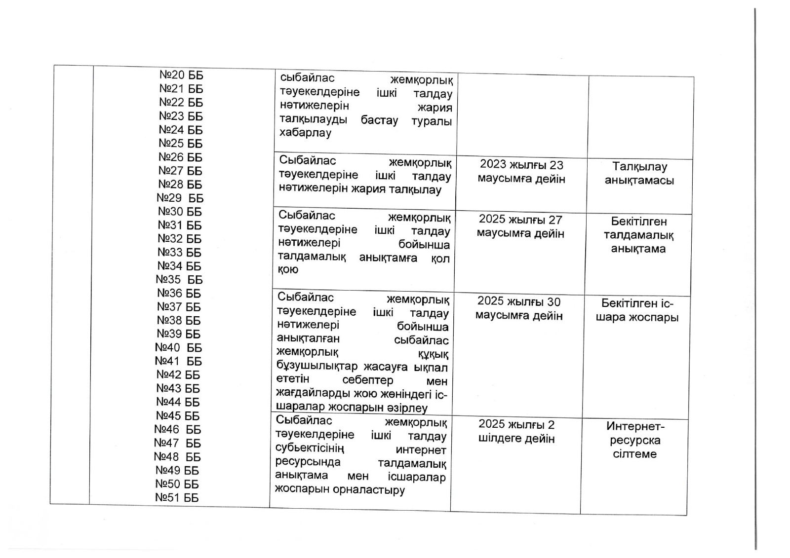 » » Сыбайлас жемқорлық тәуекелдеріне ішкі талдау жүргізу жөніндегі жұмыс жоспары