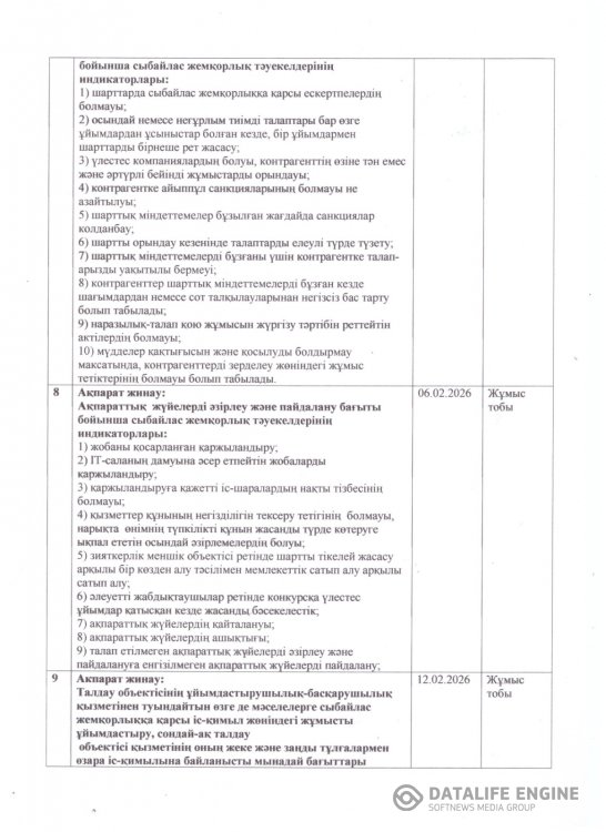05 январь 2026 Сыбайлас жемқорлық тәуекелдеріне ішкі талдау жүргізу жөніндегі жұмыс жоспары Сыбайлас жемқорлық тәуекелдеріне ішкі талдау жүргізу жөніндегі жұмыс жоспары