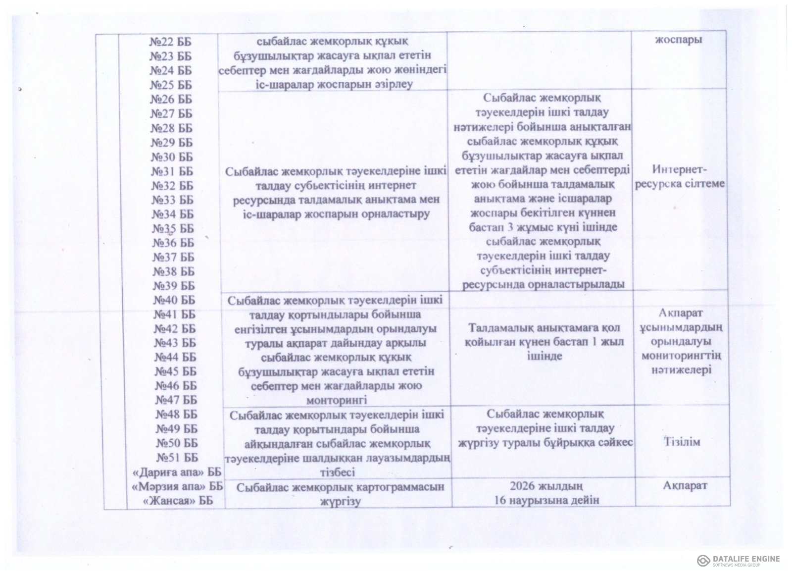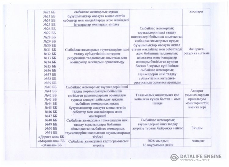 Сыбайлас жемқорлық тәуекелдеріне ішкі талдау жүргізу жөніндегі жұмыс жоспары